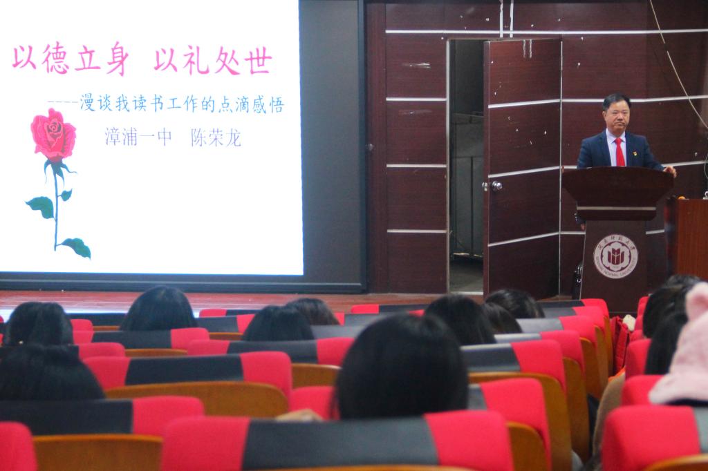 12月5日下午,太阳成城集团tyc234cc于博西梯一开展“以德立身 以礼处世”主题讲座,特邀漳浦一中党委书记、特级教师陈荣龙主讲。本场讲座由郑丽霞老师主持,18级师范专业全体学生参加讲座。