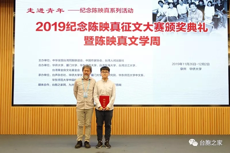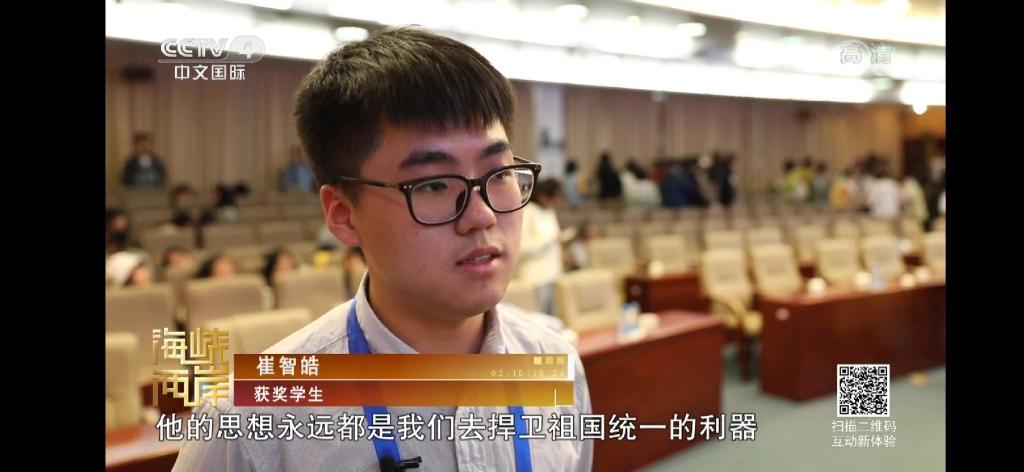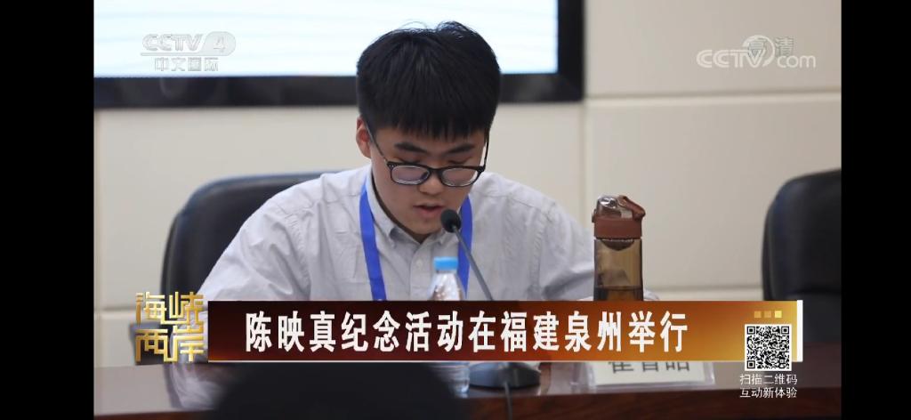11月27日,由中华全国台湾同胞联谊会、中国作家协会、台湾人间出版社共同主办的“2019纪念陈映真征文大赛”颁奖典礼暨座谈会在华侨大学举办,主题为“纪念与传承——走进青年”。本次颁奖典礼由CCTV4中文国际频道跟踪报道,我院学子崔智皓在会上作为获奖代表发言并在会后接受CCTV4中文国际频道的采访,在11月28日“海峡两岸”20:30播出。