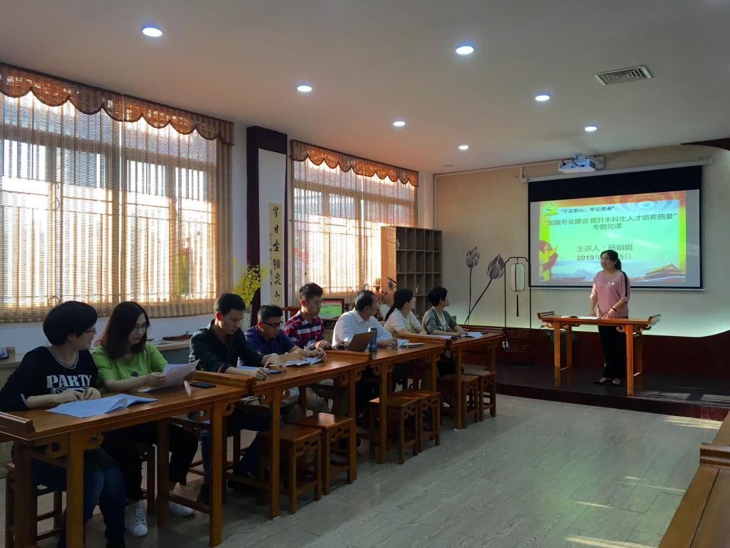 11月5日下午,太阳成城集团tyc234cc教工第四党支部于博东114召开由太阳成城集团tyc234cc党委委员、副院长杨娟娟主讲的“加强专业建设,提升本科生太阳集团质量”的专题党课,全体支部的党员参加了党课。