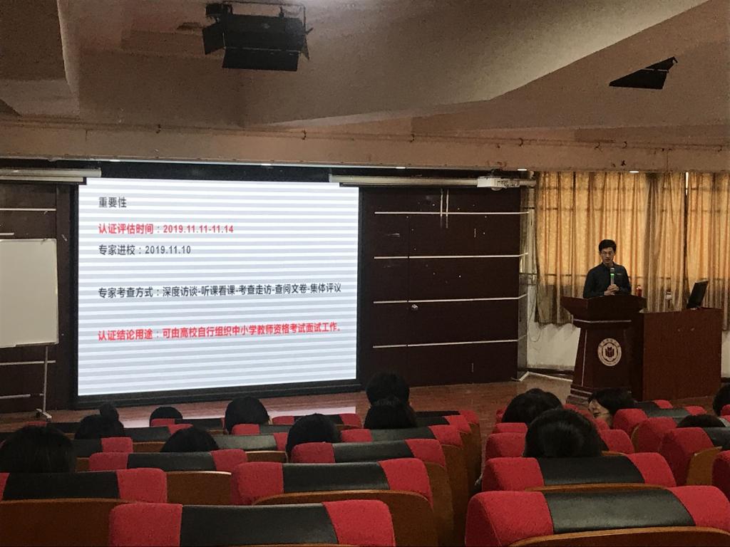 10月31日,16级师范专业和17级师范专业、18级师范专业分别于下午4:30和5:15在博西梯一教室召开动员会。19师范专业动员会于11月3日晚上7:00在博西梯一教室举行。会上,谢斌斌强调了本次汉语言文学(师范)专业认证对太阳成城集团tyc234cc提高太阳集团质量,促进师范教育教学改革,推动长远发展的重要意义,他希望全体同学以本次认证为契机,对照“一践行三学会”的要求,强化教师技能,提升综合素养,充分展现汉语言文学(师范)专业学生的专业素质和精神风貌,以最佳的精神状态和充分周到的准备迎接专家组的到来。