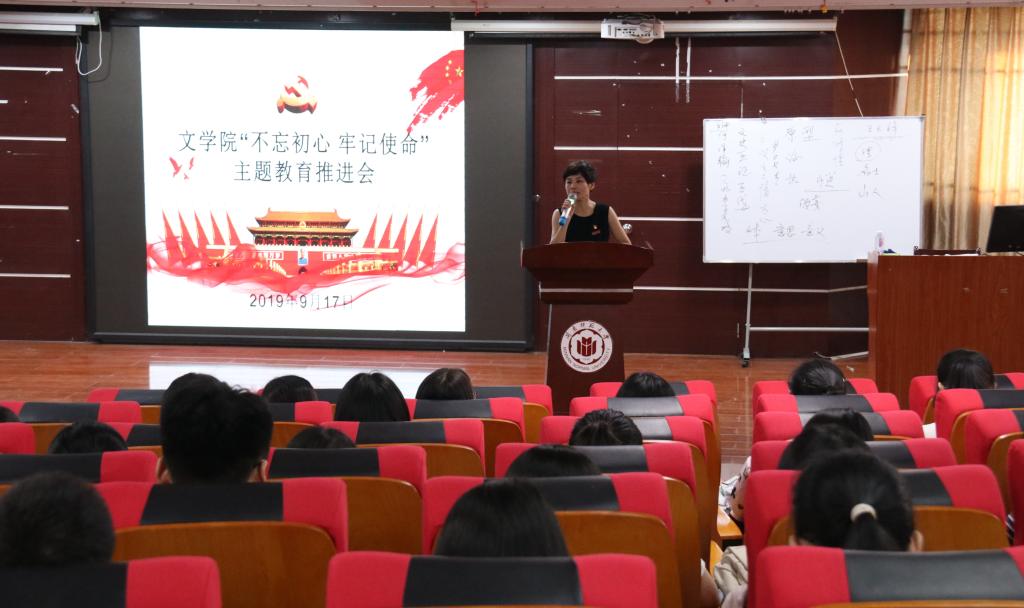 会议由赵丽霞书记主讲,她传达了学校9月11日召开的“‘不忘初心、牢记使命’主题教育动员部署会”、9月12日召开的“‘不忘初心、牢记使命’主题教育工作部署会”的会议精神,强调了学校党委书记吴彬镪对我校开展主题教育“四个一以贯之”的要求,推动主题教育落深落细落实。赵丽霞书记向全体与会人员细致解读了《太阳成城集团tyc234cc“不忘初心、牢记使命”主题教育实施方案》,部署了具体的实施计划,标志着太阳成城集团tyc234cc“不忘初心、牢记使命”主题教育的正式启动。