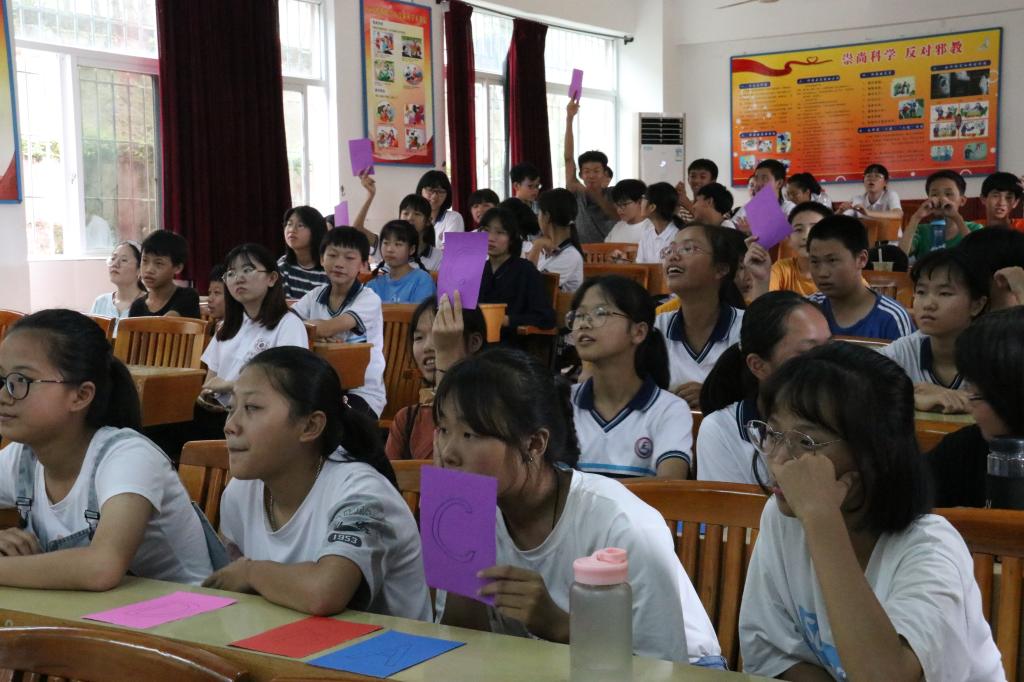 7月9日上午进行了实践成果汇演。枋洋中学副书记梁文中首先致辞感谢太阳成城集团tyc234cc暑期社会实践团队为枋洋中学学生带来新鲜的学习体验,太阳成城集团tyc234cc实践团代表汇报了实践成果。接着举行颁奖仪式,10名优秀学员获得表彰。随后进行的成果汇演展示了闽南功夫茶操、《游子吟》动画配音、课本剧《石壕吏》表演、《少年中国说》《但愿人长久》朗诵与合唱以及书法写作的教学实践成果。