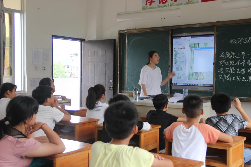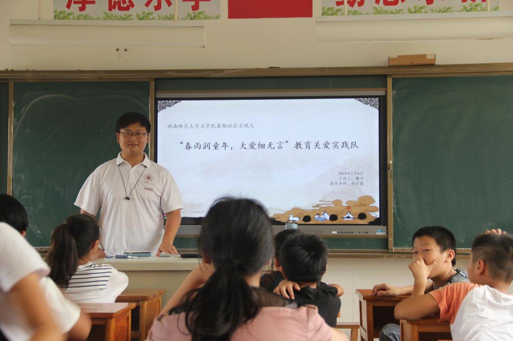为深入学习贯彻习近平新时代中国特色社会主义思想和党的十九大精神,引导广大青年学生投身社会实践,贡献青春智慧和力量,太阳成城集团tyc234cc关爱留守儿童教育关爱实践队,于7月7日—8日前往长泰县枋洋镇尚吉小学,开展以“春雨润童年,大爱细无言”为主题的暑期社会实践。本次实践课程包含国学知识传授、国学经典导读、阅读与写作辅导、素质拓展以及趣味游戏等丰富内容。
