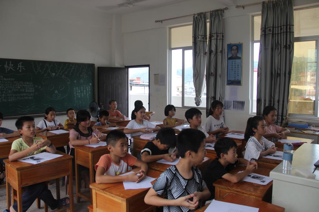 8日上午,实践队开设课程《阅读与写作》,从写作的语言、情感、手法入手,教授学生们规范写作记叙文,随后进行随堂测验并将优秀学生作品当堂朗读,检验学生课堂学习成果。在《趣味知识拓展》课堂上,实践队教授古代衣食住行方面的相关知识,并采用快速提问的方式,激发了学生们的学习热情,提高了课堂学习效率。实践队还在当地扶贫办负责人带领下走访留守儿童及贫困儿童家庭,深入了解了乡村小学生困难家庭现状,进行爱心关怀和慰问。下午,实践队开设课程《论语选讲》,通过对经典语句的讲解教授学生学无止境的学习态度和知行合一、不断反省的学习方法;其次开展团扇制作实践课程,教导孩子们皆将心中所想所念书画于小小团扇之上,既获得美的体验,又收获乐趣。课程最后,实践队队员与学生们互相签名,合影留念。
