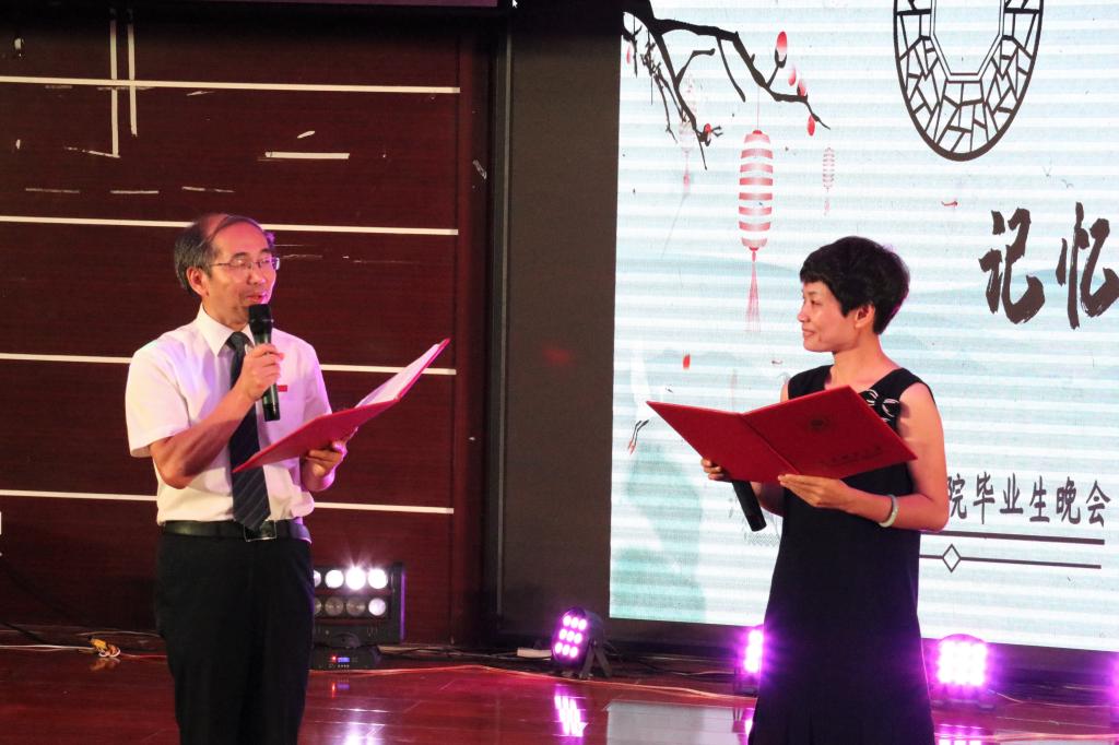 当晚,“2019届‘记忆留夏’”主题毕业生欢送晚会如期举行。晚会开场,15级毕业生代表为老师们送上鲜花,感谢老师们四年来的栽培与关怀。黄金明院长与赵丽霞书记合诵《时间之爱的故事》为毕业生送祝福,期望同学们领悟“无我的付出”“时间之爱”的真谛。同时,别具特色的歌舞表演贯穿全场。展现中华传统魅力的民舞表演《大道》、活力四射的街舞《My youth》让观众们感受到传统和现代的强烈碰撞;芝山剧社朗诵《致毕业生》,抑扬顿挫的语调、真情实感的语句表达了对毕业生的深切祝愿;相声表演《好好学习》和小品表演《放歌西部》传达出不忘初心、勇于追梦的精神;最后,全体大合唱《相亲相爱》,师生共同分享毕业蛋糕。