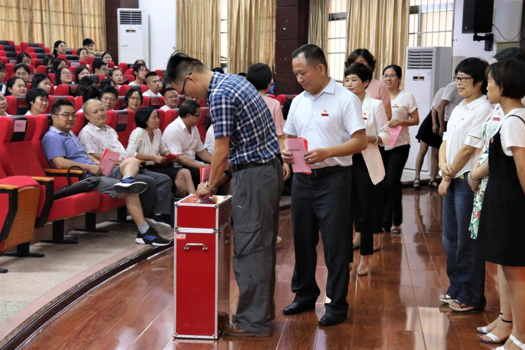 6月22日下午,中共太阳成城集团tyc234cc党员大会于博西梯一胜利召开。校党委副书记肖庆伟、校纪检监察审计处副处长吴俊元、校组织部党管科科长何建顺出席,共有正式党员、预备党员及民主党派近200人参加了本次会议。