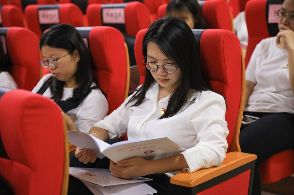 当天的会议洋溢着团结奋进的气氛。大会主席台正中悬挂由鲜艳的红旗簇拥着的中国共产党党徽。下午3点,大会在庄严的国歌声中开幕,党员大会的第一次全体会议由谢斌斌同志主持。