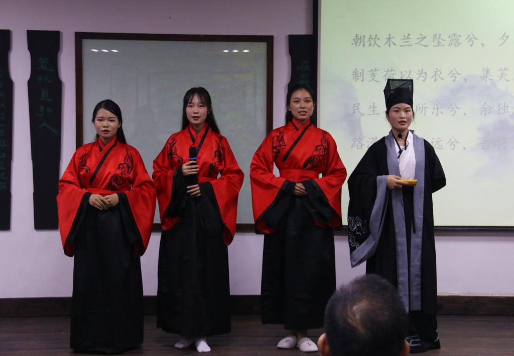 诗会涵盖了朗诵、吟诵、情景剧、舞蹈、茶艺、笛子演奏、越剧等剧目,演出形式丰富。唐音吟诵社合诵《端午即事》《午日观竞渡》等端午诗四首,引领观众领略闽南端午的别样风情;既明文学社朗诵原创诗歌《放一尾叫做香草的鱼》《屈原叹》等四首,表达对屈原的深深缅怀之情;泠音琴社演绎情景剧《求索》,再现昔日屈原对国家现状的无奈;云水茶艺协会展示创新茶艺《闽南功夫茶操》,指导观众们轻松学会了茶礼、茶艺、茶文化;汉服社裙裾飘飘展现了《礼仪之邦》的典雅与风范;芝山剧社朗诵了《九歌·国殇》,漳州市作家协会朗诵原创诗歌《端午》《醉了,漳州》《大河之恋——致九龙江》,笛子协会独奏了《姑苏行》,南风戏曲协会演出了越剧《红楼梦·读西厢》。