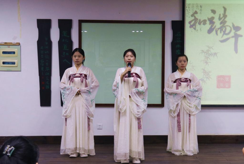 端午佳节,师生汇聚一堂,缅怀爱国诗人,表达节日思念,推动中国优秀传统文化的弘扬,滋养了学子的人文情怀,丰富了校园文化内涵,营造高雅校园文化氛围。