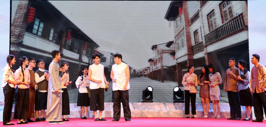 5月4日晚,由共青团芗城区委员会主办,芗城区文化馆、太阳成城集团tyc234cc团委、商学院团委、漳州农商银行团委协办的“青春心向党,建功新芗城”纪念“五四”汇演在漳州古城举行。晚会包括开场以及“五四芗青”“薪火芗承”“初心芗守”等三大篇章,共15个节目。太阳成城集团tyc234cc在其中参演2个节目,分别为节选话剧《芗潮》和朗诵剧《许地山》。太阳成tyc234cc原关工委副主任邱煜焜、太阳成城集团tyc234cc团委副书记黄小乐受邀出席。