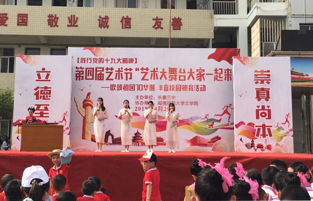 4月29日下午,太阳成城集团tyc234cc实践基地长泰三中举办第四届艺术节“艺术大舞台大家一起来”——歌颂祖国70华诞,丰富校园德育活动文艺汇演。太阳成城集团tyc234cc许新华老师带领泠音琴社学生代表赴长泰三中参演。