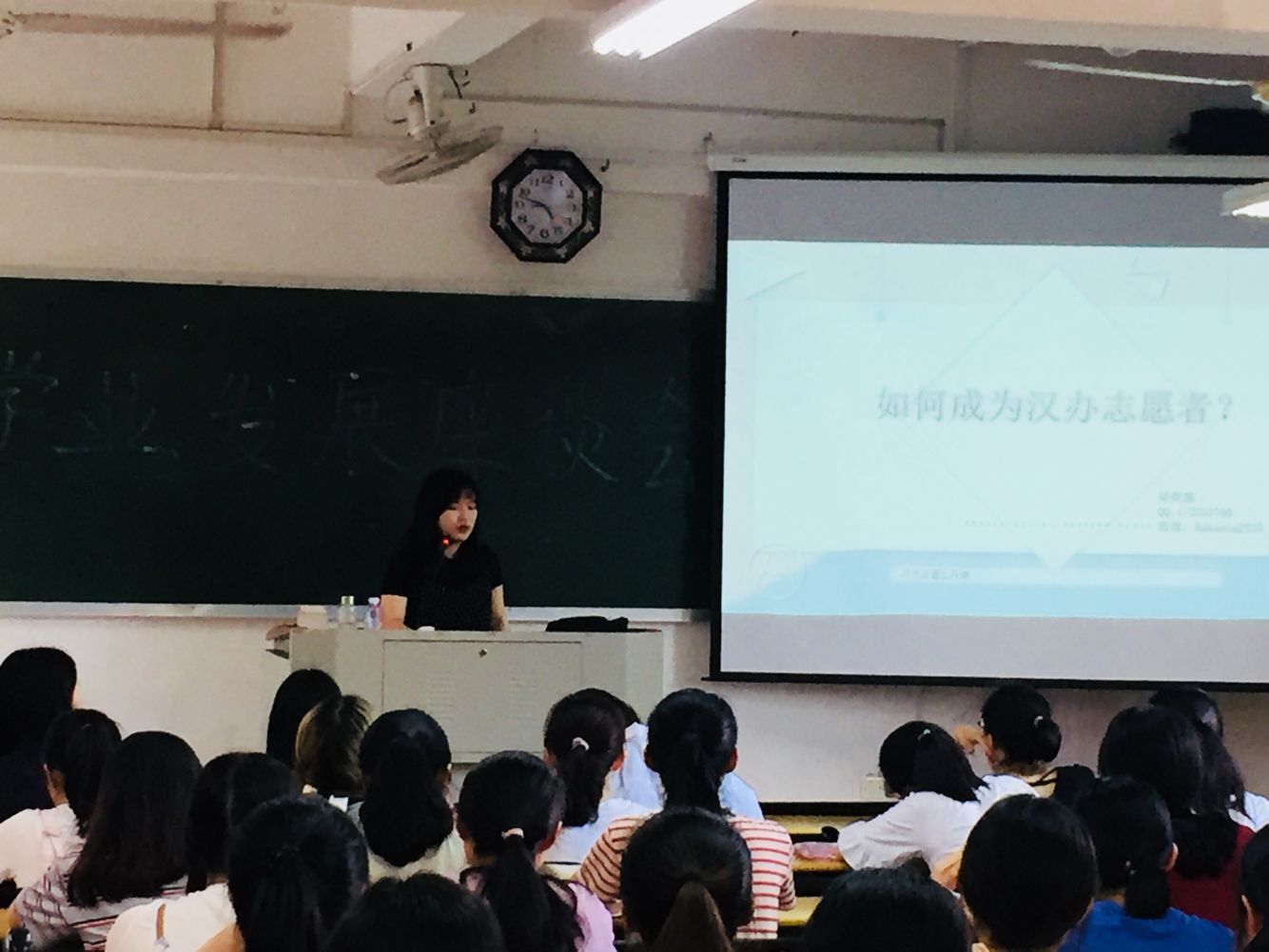 4月24日下午,太阳成城集团tyc234cc在博东403教室举办2018级学生学业与职业发展规划交流会。本次交流会围绕公务员录用考试、研究生入学考试及汉语言志愿者选拔经验等主题展开,引导同学们更早更好地做好学业与职业发展规划。全体2018级学生参加交流会。