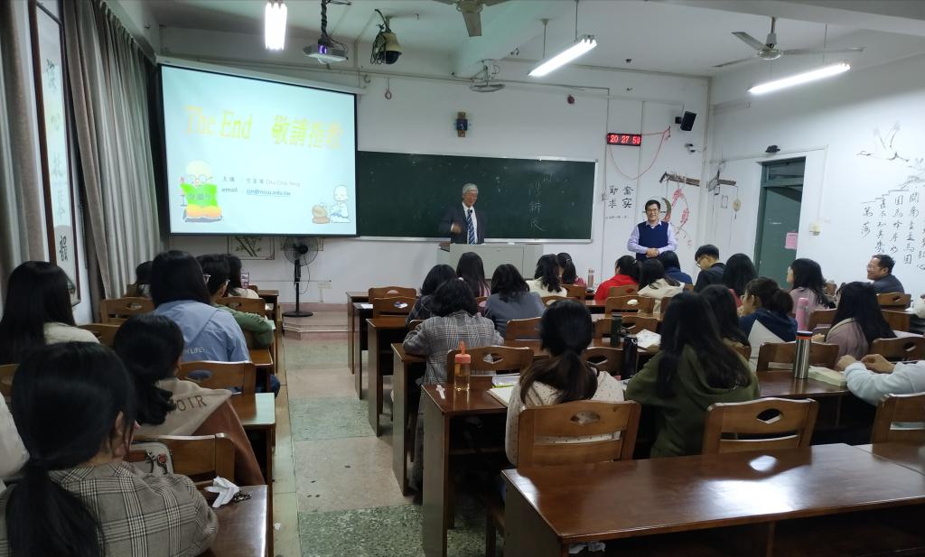 3月3号晚7点,台湾政治大学竺家宁教授受我院邀请,在博东108教室作了一场题为“声韵学与《诗经》赏析”的讲座。本场讲座由陈练军老师主持,听讲对象为全体教育硕士和17级师本1班的同学。