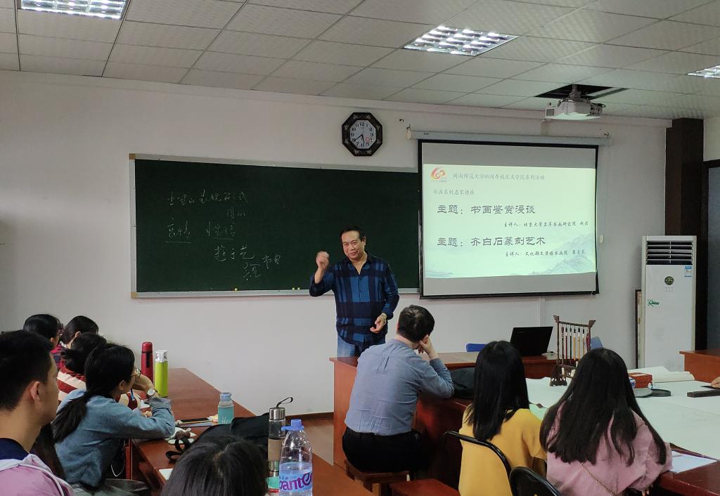 12月6日,北京大学兰亭书画研究院赵君先生与文化部文津楼书画院翟玉龙先生莅临太阳成城集团tyc234cc,分别为太阳成城集团tyc234cc书画研习班的成员开展主题为“书画鉴赏漫谈”与“齐白石篆刻艺术”的讲座。讲座由太阳成城集团tyc234cc沈金耀教授主持。