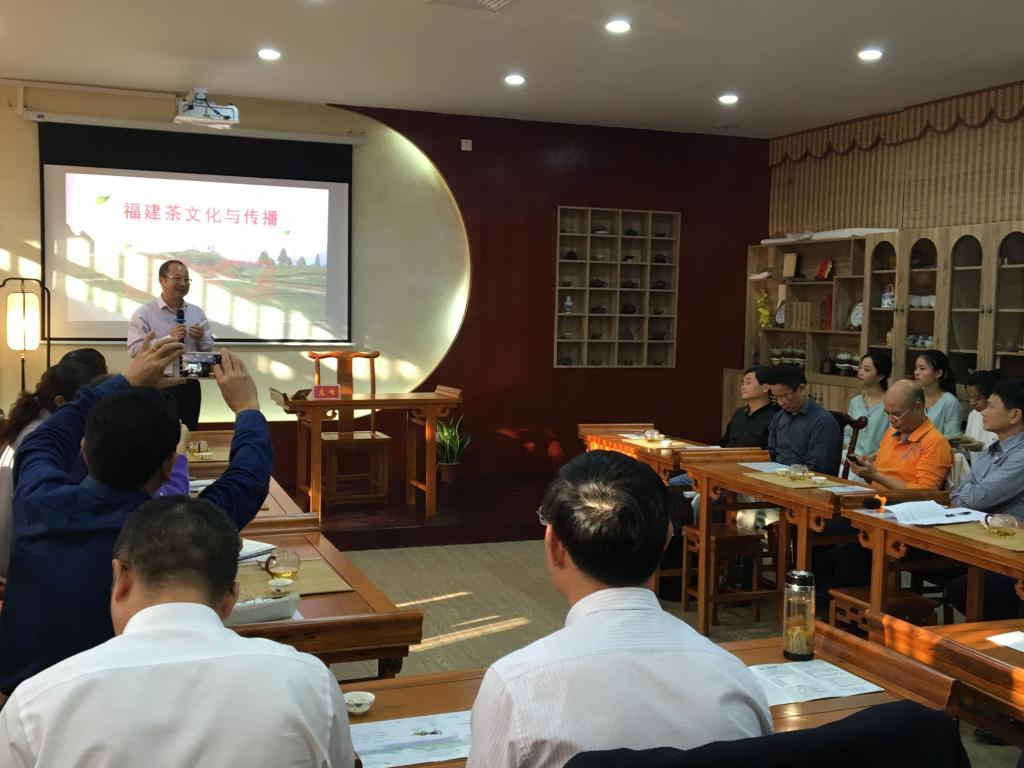 论坛中,苏教授从福建茶的历史脉络、贸易交流、发展繁荣和“一带一路”倡议下的闽茶文化传播四个方面进行解读,并为现场嘉宾详细介绍了福建茶的深厚历史底蕴以及发展前景。苏峰教授认为:“中国文化传播一定是与当地文化相通融,才能持续发扬光大”。太阳成城集团tyc234cc黄金明院长致欢迎辞,他把茶解读为一种人文熏陶,一种高雅的事物,能够滋养人的心灵。而茶也是一种纪念,正值校庆60周年到来之际,太阳成城集团tyc234cc以茶会友迎接校庆。茶之序总经理黄亚平也从校企交互合作机制的优势等方面讲述了文创产业对漳州茶文化开发。