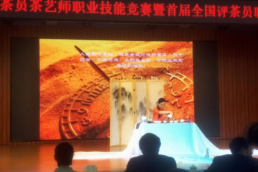2018年福建省评茶员茶艺师职业培训技能竞赛暨首届全国评茶员职业技能竞赛福建选拔赛在漳州科技学院开展。当天,共有17组的职业茶艺师带来精彩的茶艺表演。比赛准时拉开帷幕,茶艺师们用优美的诗歌,曼妙的舞蹈,或是生动的陈述,精巧的情景布置引领着观众们进一场场主题鲜明,充满新意的主题茶艺表演中。从隆冬的腊梅树下,到盛夏的荷塘边上;从茶前世今生的传奇故事,到丝绸之路上的声声驼铃;从日常生活饮茶的闲适自若,到婚嫁大典敬茶的典雅端庄。茶艺师们配合着音乐的起承转合,背景屏幕的变动转换,展现着自己精湛的泡茶技艺,手托茶杯,悬壶高冲,举手投足间尽显优雅与从容。