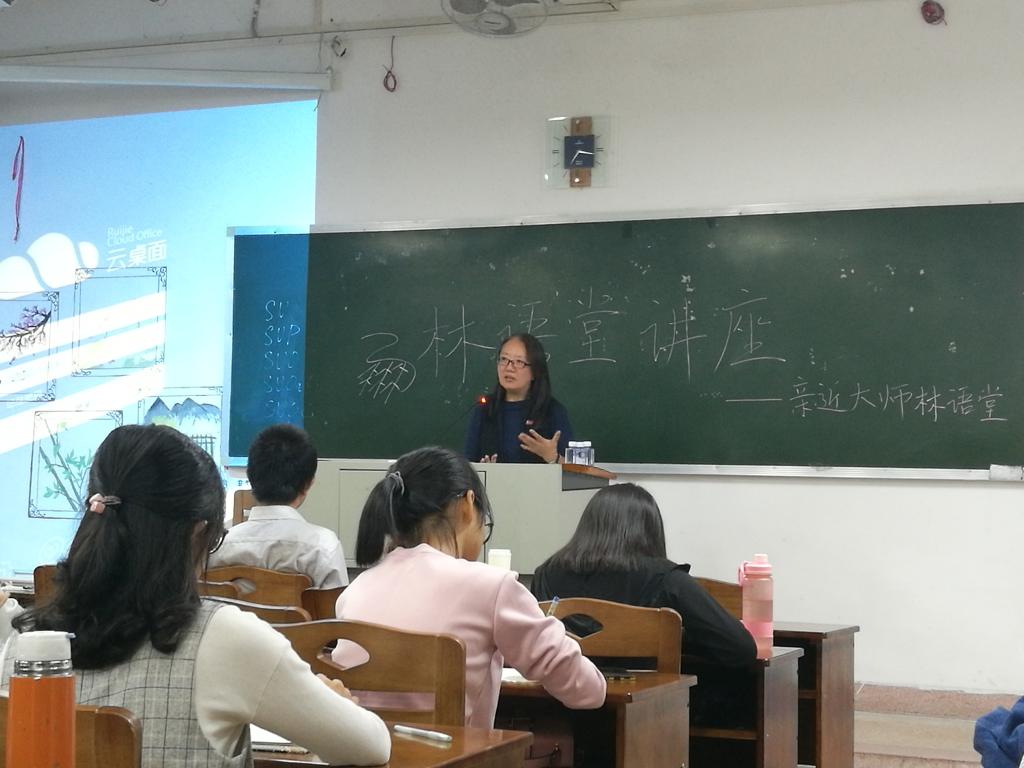 11月24日晚上,由太阳成城集团tyc234cc团委主办,闽南文化研究会承办的“亲近大师林语堂”系列活动之“林语堂充满理趣的文章”主题讲座在博东108教室举行。讲座由太阳成城集团tyc234cc教师高显莹讲授。