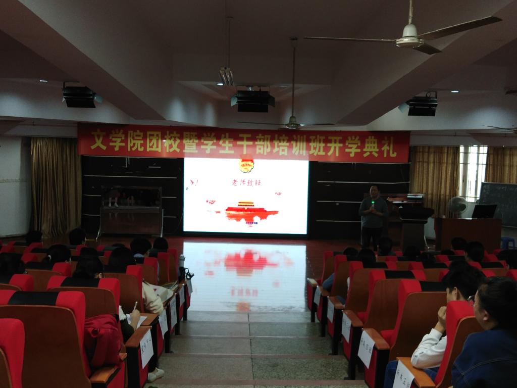 本次团校开学典礼在全体成员的国歌演唱中正式开始。首先,党委副书记谢斌斌发表开幕式致辞,他指出团校学习的最终目的在于打造出一支学院靠得住,老师靠得住的青年铁军,并强调不忘初心方能做好本职工作。随后,团委副书记黄小乐宣读团校培训须知,明确了团校培训的各项要求及各项工作。接着,优秀学生代表甘巧妍进行发言,她以自身的学生工作经历为例,指出了身为学生干部应该具有责任意识,更好地为班级部门做贡献。开学典礼的下半场,团委副书记黄小乐以“如何做新时代的合格团员”为题讲授第一节团课。他表示要正确认识当前时局,并指出个人与社会是紧密相连的,个人价值的实现离不开社会价值的实现。他强调学生干部一定要增强自信心,不断完善自我,树立远大理想,他鼓励学生干部积极投身实践,追求卓越并以一个生动有趣的游戏“我的生命线”结束了本次团校课程。