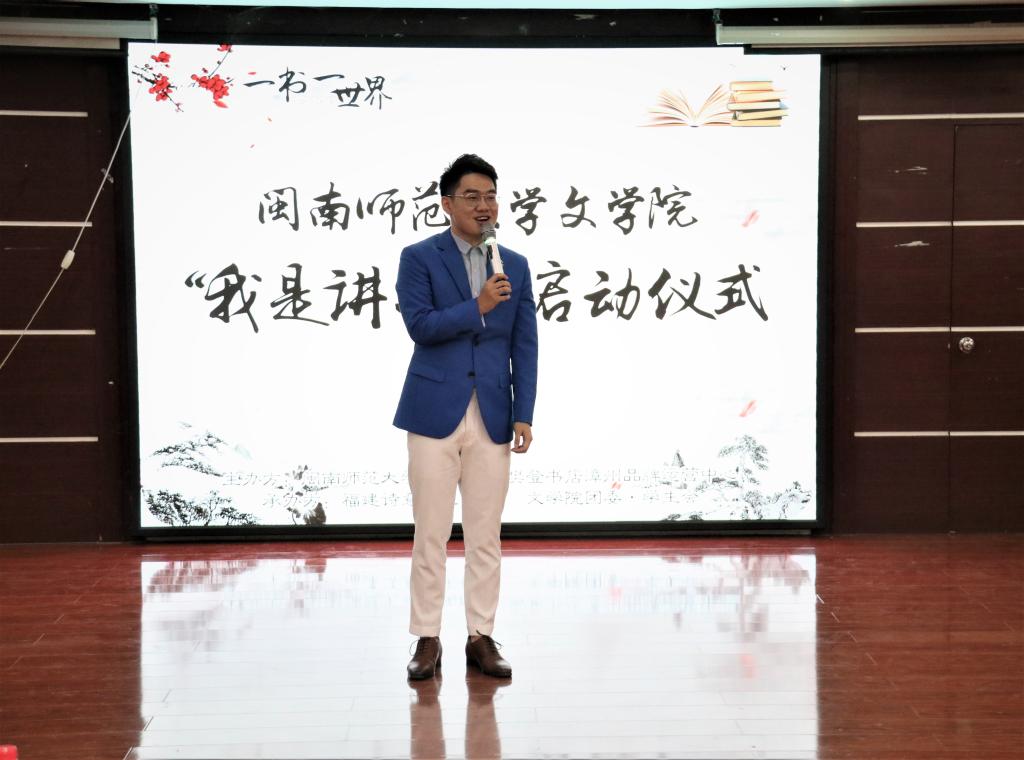10月26日晚,由太阳成城集团tyc234cc和樊登读书漳州品牌运营中心联合主办,福建诗意文化传媒、太阳成城集团tyc234cc团委学生会承办的“我是讲书人”启动仪式在博西梯一教室举行,第二季“我是讲书人”国际大赛福建赛区十强选手、太阳成城集团tyc234cc校友毕莎蔓、吴凡受邀现场讲说新书,带领新生开启“快乐阅读启迪智慧”之旅。太阳成城集团tyc234cc党政班子、沈金耀教授、王朝华教授、王念灿老师、李新东老师与樊登书店品牌运营中心、海峡儿童中心、平和林语堂研究会、漳州大地教育集团等单位负责人受邀出席。