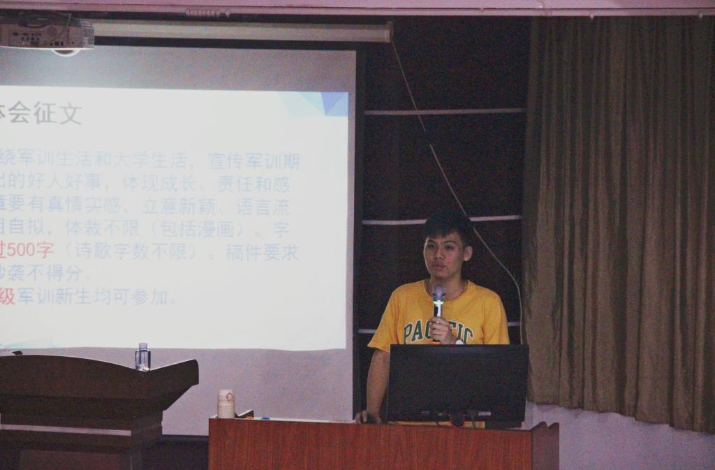 黄老师在大会上动员同学们全身心地投入到即将开展的军训中,他强调军训中的安全问题以及注意事项,提及应严格规范军训生活中的多个方面,力求做到纪律严明,养成良好的学风和生活作风。同时,他希望新生们积极调整心态,以饱满的精神状态迎接军训生活,通过严格的军事训练,培养艰苦奋斗、刻苦耐劳的坚强毅力和集体主义精神,增强国防观念和组织纪律性,掌握基本军事知识和技能。黄小乐老师祝愿全体新生在军训过程中能发扬军人艰苦奋斗的优良作风,圆满完成军训任务。会议的最后,党建宣传中心向新生详细讲解并安排军训期间的宣传工作。