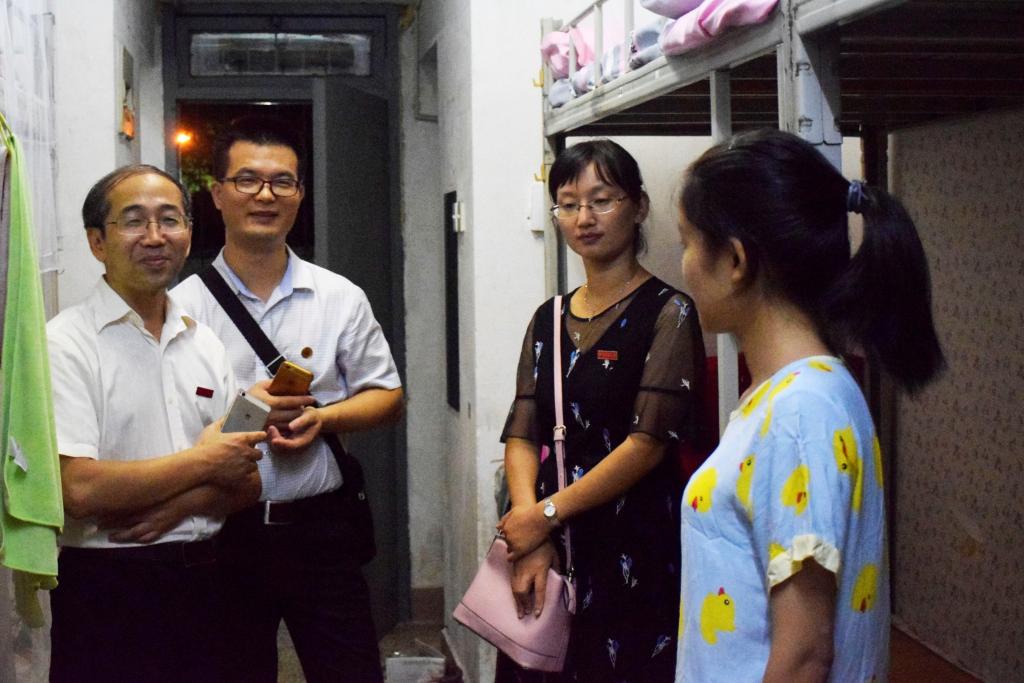 晚上七点半,太阳成城集团tyc234cc党政班子及政工干部分三组深入走访新生宿舍,详细了解同学们的安顿情况,关心同学们的需求,解答同学的疑问,同时进行宿舍安全教育,拉近了师生距离。学院领导班子与同学们亲切交谈,祝愿同学们能尽快融入大学生活,勉励同学们积极进取,励志奋斗,开启大学生活的新篇章。