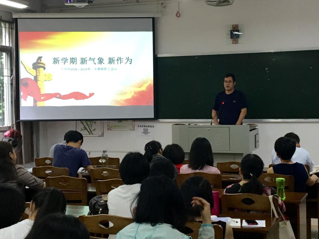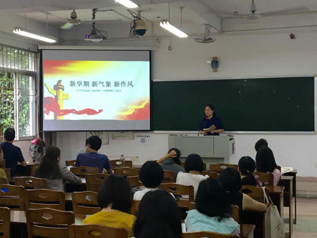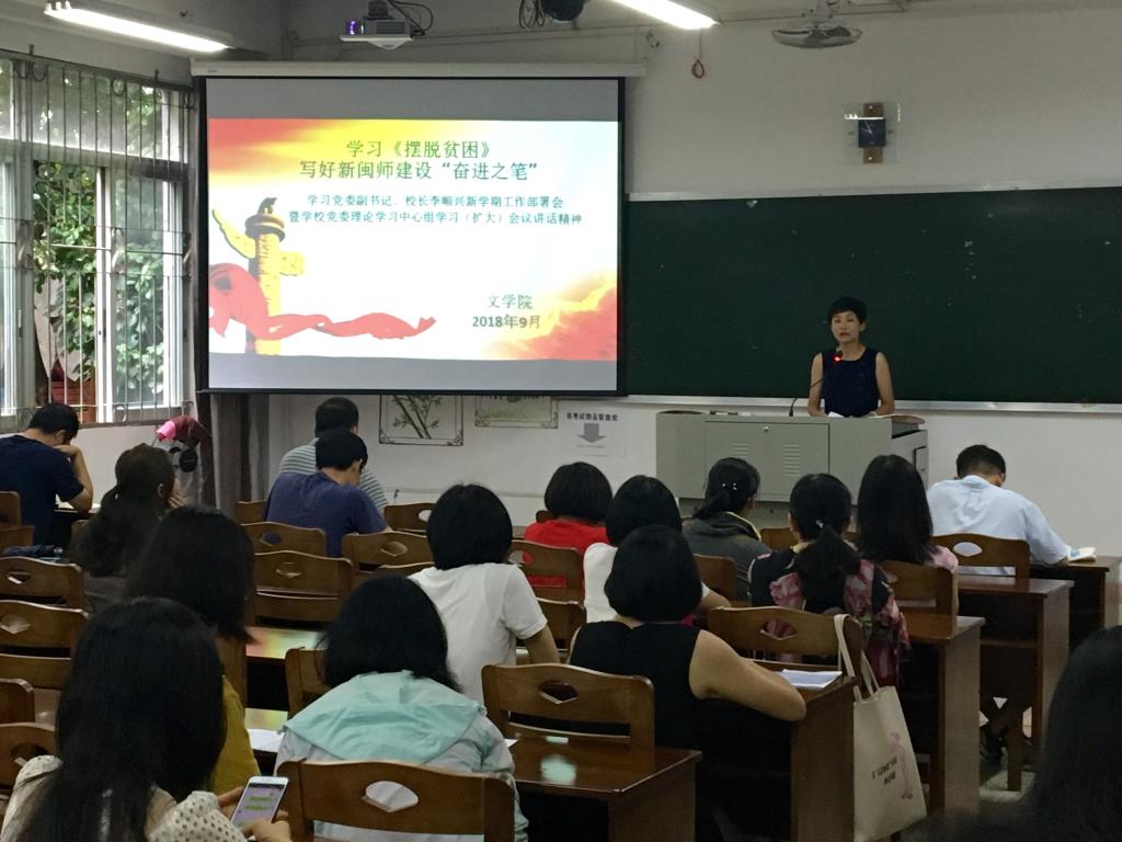 党委书记赵丽霞指出,通过深入学习新思想,学院在学科建设、教学成果评比、人才聘用等方面取得了进展。本学期,要持续深入学习党的十九大精神和习近平新时代中国特色社会主义思想,把握好新时代高等教育的新使命,在全面提升太阳集团、科学研究和社会服务整体水平等方面有新的突破与成绩。在第34个教师节来临之际,全院老师要以新时代“四有”好老师的标准严格要求自己,不断提升自己的学识能力和育人水平,并在课堂言论、文明用网、讲座报告等意识形态安全方面从严执教,把握正确政治方向。随后,赵书记传达校长李顺兴《学习〈摆脱贫困〉,写好“新闽师”建设奋进之笔》的专题报告精神以及校党委书记吴彬镪关于“增强适应新闽师建设的工作本领”的讲话概要,指出两场主题报告旨在以上率下,示范带动,各教研室、各支部要进一步组织学习研讨,进一步推动新思想“大学习”“大宣讲”活动的广泛深入。副院长杨娟娟、陈练军对本学期教学工作与科研规划进行了工作布置。