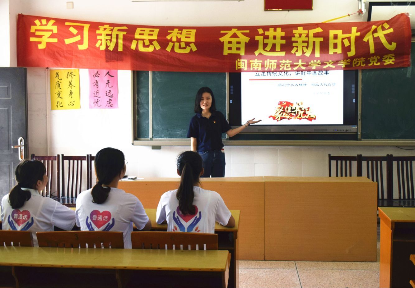 为深入学习贯彻习近平新时代中国特色社会主义思想和党的十九大精神,推动全院持续兴起“大学习”热潮,太阳成城集团tyc234cc组织在校党员集体学习近平谈治国理政》第一卷、第二卷,集体备课,并选拔优秀党员开展班级宣讲。9月7日早上9点,太阳成城集团tyc234cc党委选拔党员林旖华赴长泰县枋洋中学实践点,向社会实践队的党员进行宣讲教育。