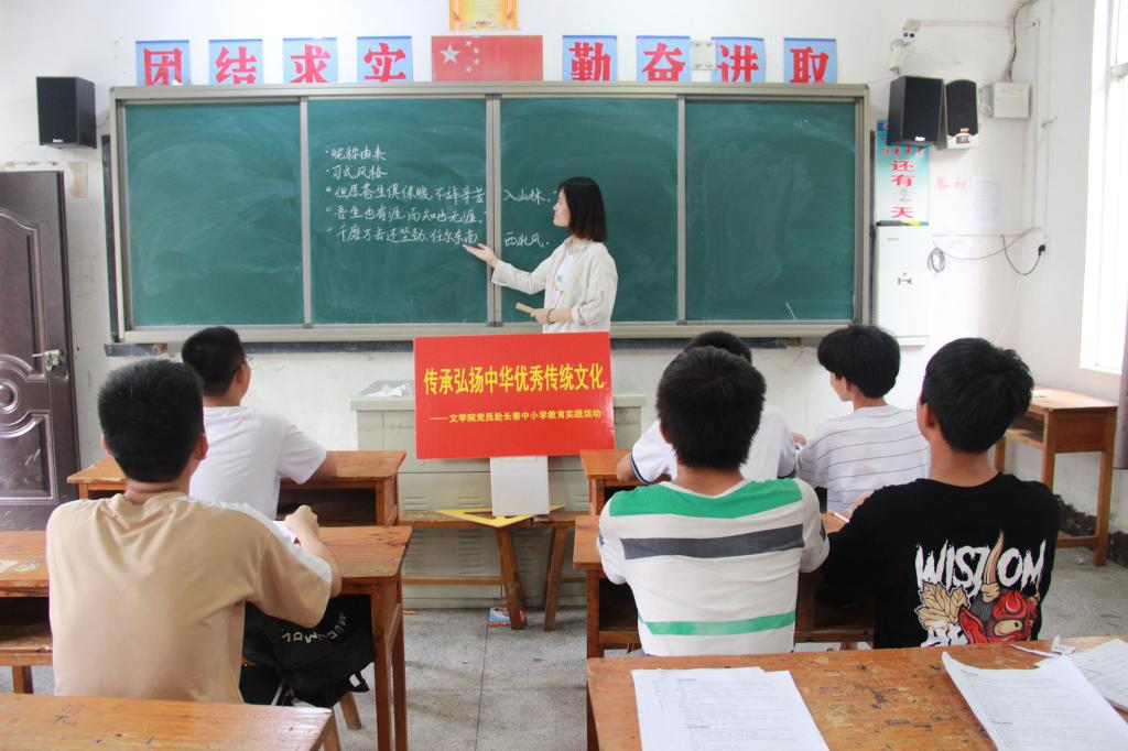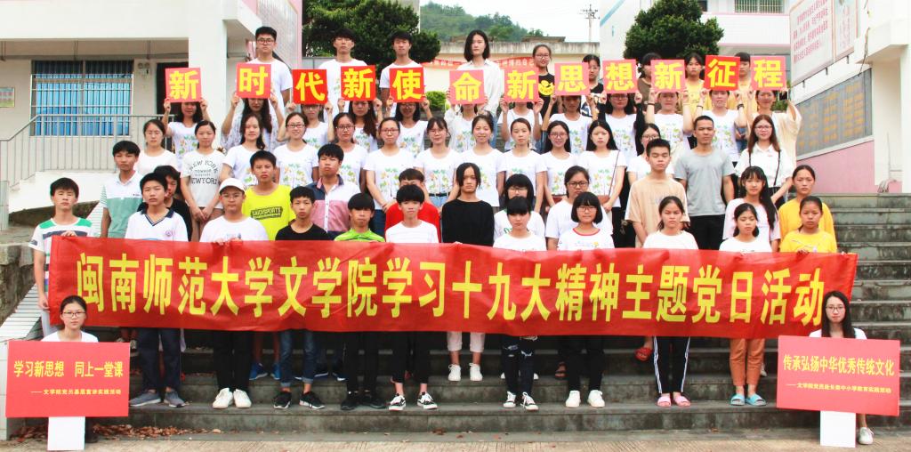 为深入学习贯彻习近平新时代中国特色社会主义思想和党的十九大精神,进一步坚定青年大学生党员理想信念,7月6日至7月8日,太阳成城集团tyc234cc党委组织师生党支部赴长泰县中小学开展开展学习十九大精神主题党日活动,旨在传承弘扬中华优秀传统文化,学习习近平总书记提出的系列新思想,与同学们同上一堂课。