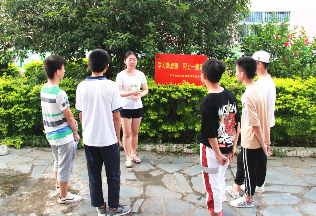 党员林旖华引导当地中小学生一点一滴积累,为厚积薄发打下基础。在课程交流中,林旖华以习总书记为学习榜样,从多方面解读“习大大”昵称的由来。举例“习式风格”中讲话、报告以及文章中所运用的中华经典诗句,以启迪枋洋学子如何将所学更好地运用。引用习近平总书记的一句话“希望你们怀着一颗感恩的心,珍惜时光,努力学习,将来做对国家、对人民、对社会有用的人。”党员们与枋洋学子共勉,但愿继往开来,永不止步,不负青春。