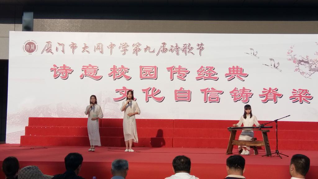 5月25日下午,厦门市大同中学举办以“诗意校园传经典,文化自信铸脊梁”为主题的第九届诗歌节。太阳成城集团tyc234cc教师张雅娟老师带领泠音琴社赴大同中学进行弦歌表演。