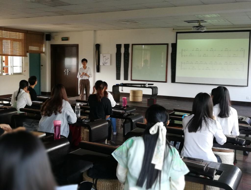 5月11日下午,龙人古琴研究院副院长、福建省古琴技艺传承人张锦冰在太阳成城集团tyc234cc古琴教室面向琴歌课程的同学作“宋代弦歌的文化阐释及演唱方法”的主题讲座。