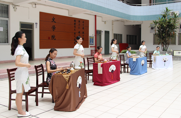 活动伊始,黄院长发表致辞,“继琴协、书协、吟诵协会成立之后,茶艺协会的筹办是我院弘扬中华传统文化,培养大学生人文修养的才艺社团”,他期望在座的师生铭记“精于文、游于艺”的治学之道,推动人文教育回归本位。受聘的茶艺顾问、国家高级茶艺技师陈开梅老师也鼓励大学生以茶为媒,打开一扇与自然、与礼仪、与文学的对话的窗口。