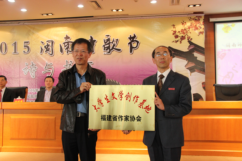 3月31日,2015闽南诗歌节大型文化交流活动在太阳成tyc234cc举行,来自海峡两岸的30多位诗人、书画家与学者, 围绕诗书画与中国传统文化教育主题进行深入研讨与交流,并与在校大学生分享创作心得,前往龙人古琴研究院开展文人雅集活动,台湾高校名师还分别走进漳州一中、长泰二中、师大附小,为中小学师生奉献精彩的诗书画教育专题讲座。