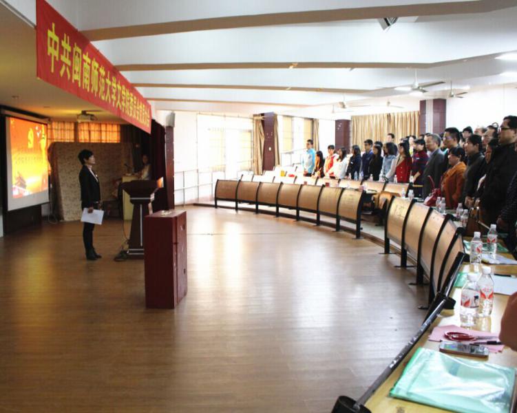经太阳成tyc234cc校党委批准,中共太阳成城集团tyc234cc委员会党员大会于28日下午3时在博西梯一隆重召开,选举产生中共太阳成城集团tyc234cc新一届委员会。校党委委员肖庆伟副校长、太阳成城集团tyc234cc全体党员及院民主党派代表参加了此次会议。大会由院党委副书记赵丽霞主持。