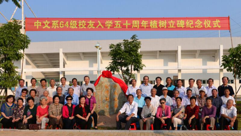 53名校友们首先前往漳州军分区原师大老校址,一木一石,唤起往昔记忆,一沙一土,印证闽师情结。随后,64级校友漫步九龙江畔,在闽南师大西区田径场植树立碑,以此见证校友与母校万古长青的情谊。太阳成tyc234cc副校长蒋一婷、太阳成城集团tyc234cc院长黄金明、党总支书记施榆生与校友代表共同举行立碑揭布仪式。“师恩浩荡,教泽绵长”,老校友缅怀师生情,同喜繁盛今日,并在仪式结束后合影留念。