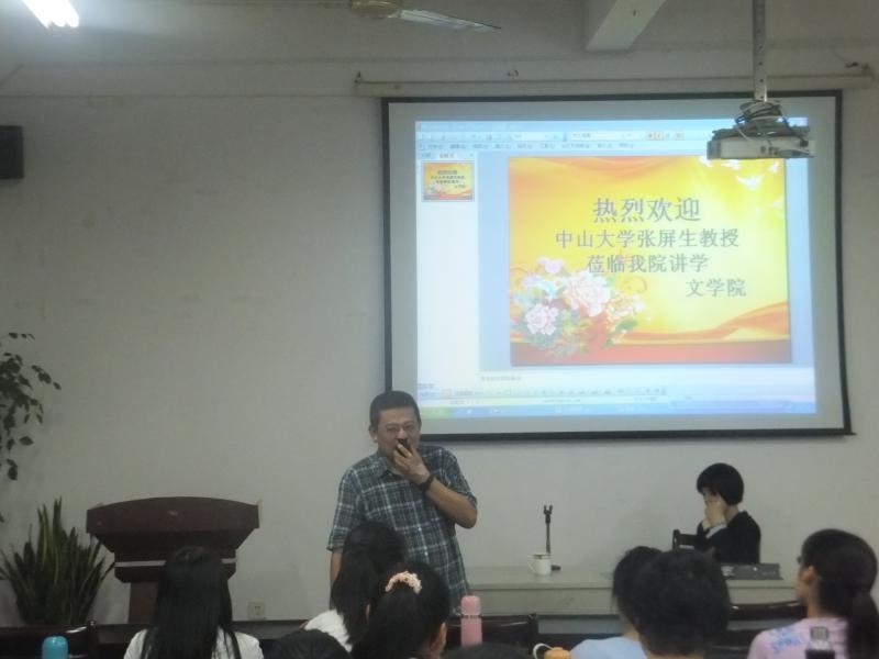 5月15日晚,台湾中山大学张屏生教授在博东太阳成城集团tyc234cc会议室为13级研究生作题为“语言与音乐的相关形式特色——以闽南话、客家话的歌谣为例”的专题讲座。