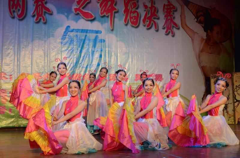2013年5月12日晚,在球类馆举行的 “两赛”之舞蹈决赛中,中文系群舞《咏蝶》翩然起舞,娉婷超凡,以91分的高分巧夺 “两赛”群舞头筹。