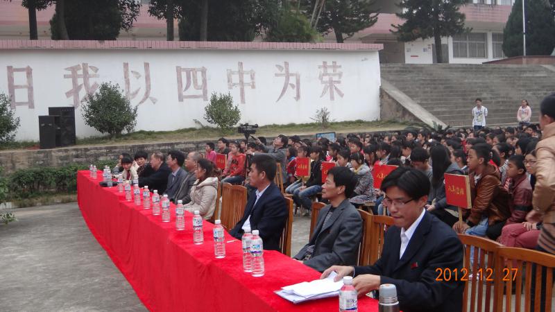 12月27日,由我校教务处、云霄四中主办,中文系承办的“吟中华经典·展诗人风采”课本剧巡礼之“星火燎原·课本剧进中学”云霄行第三场,在云霄四中隆重上演。云霄县委副书记朱百里亲自慰问了演出团队,希望大学生把经典诗作的爱国主义精神传递给中学生,提升大众文化品味。中文系党总支副书记赵丽霞副教授,关工委副主任邱煜焜老师以及云霄四中党总支书记、校长周伟斌、副校长张锦雄、副书记罗永福、漳州云霄教育台台长张瑞勇等领导老师与四中的共同观看了演出。
