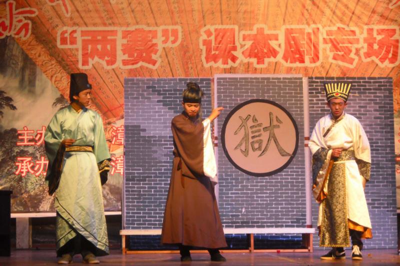 悠悠古韵,浓浓诗情。2012年12月7日晚7时,由院教务处、学生处、团委、关工委主办,中文系承办的“两赛”课本剧专场在球类馆拉开帷幕。院教务处处长黄金明教授、院关工委副主任邱煜焜老师,中文系沈金耀教授、中文系王朝华副教授、漳州一中语文老师王龙祥担任评委,中文系党总支施榆生书记、辅导员老师与来自院戏剧鉴赏班、众多校园戏剧爱好者一同观看了本次演出。