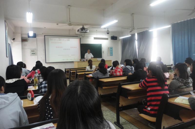 着眼考研形势,黄教授为同学们分析了近几年来考研概况和总方向,在报考人数增加的同时,黄教授介绍近年来录取比例也增加,为同学们提供更多选择空间;就考研心态来说,黄教授认为,自信第一重要。考研也是生活的一种方式,只是比其他同学目标更明确,希望同学们要摆好心态,不要跟别人比较,专心做自己的事情。怀有广阔胸怀,握有持久理念,心有多宽,舞台就会有多大。谈到减压,黄教授为同学们分享了各种减压方法,如饮食减压法,运动减压法,转移减压法等,幽默风趣的语言和精彩的事例不时让考研学子频频报以掌声。黄教授说,压力任何时候都有,希望对待压力同学们持之有度,科学理解,善于分解。最后,黄老师与考研学子们在一首励志歌曲《生命的河》歌声中结束本场讲座,并祝愿大家学业有成。