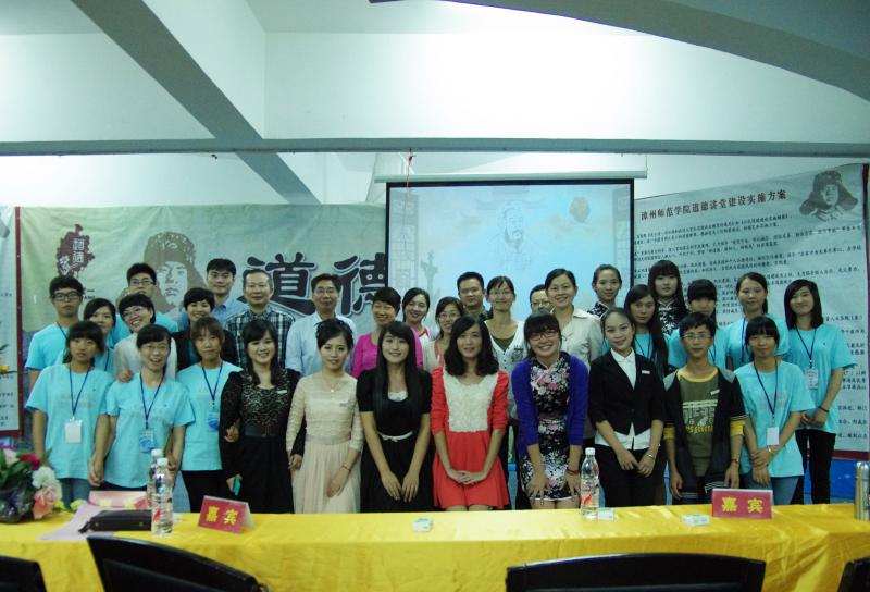 为弘扬师德,让师爱升华。11月5日19时30分,一场以“学高为师,德高为范”为主题的道德讲堂活动于达理活动中心三楼顺利举行。院党委宣传部部长陈再生,中文系党总支书记施榆生,党总支副书记赵丽霞及120名师范生共同参加了本次活动。