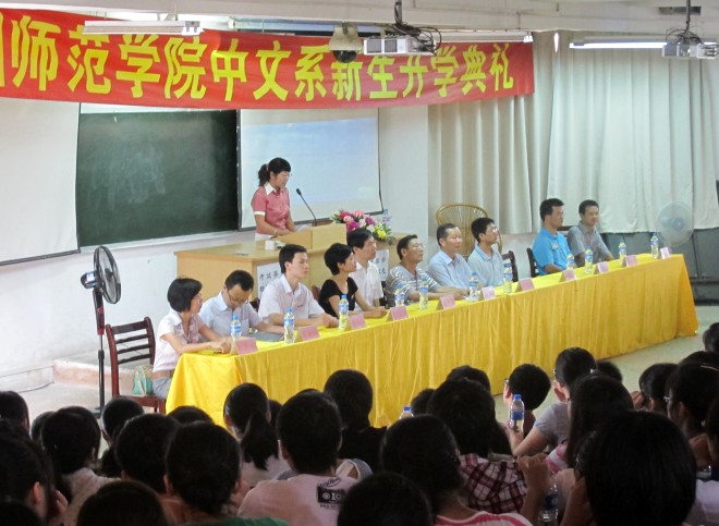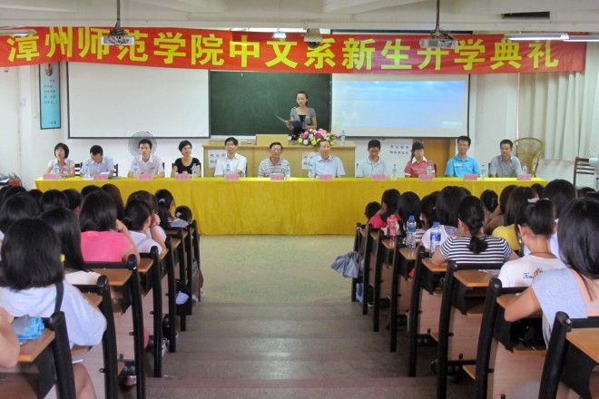 9月11日8时,“中文系2011级新生开学典礼暨安全教育”于博西梯二教室拉开序幕。开学典礼由系团委副书记陈文婷主持,中文系主任胡金望,系党总支书记施榆生、系副主任陈煜斓、系副主任林大志、系党总支副书记赵丽霞等出席了本场活动。