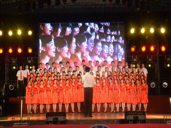 漳州师范学院庆祝建党90周年歌咏晚会之中文系 2010年6月2日漳州师范学院“庆祝建党90周年歌咏晚会”在院球类馆隆重举行中文系100名师生参与了此次红歌节目, 中文系美妙动人的《八月桂花遍地开》和气势澎湃的《工农兵联合起来》拉开了晚会序幕。