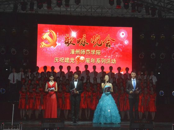 2010年6月2日漳州师范学院“庆祝建党90周年歌咏晚会”在院球类馆隆重举行中文系100名师生参与了此次红歌节目, 中文系美妙动人的《八月桂花遍地开》和气势澎湃的《工农兵联合起来》拉开了晚会序幕。