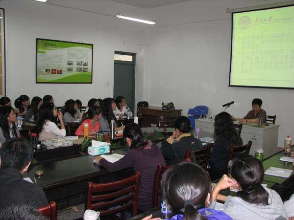 而后是2日上午,刘教授又针对中文系研究生和本科生作了《文学作品的文本分析》的学术报告。2日晚上,刘教授以“当前中外文艺学研究中的前沿问题”为主与中文系青年教师进行一场别开生面的学术交流的座谈会。毋庸置疑,刘教授此行以她渊博的学识、睿智的谈吐、深刻的见解,让我们感受到了大家风范的人格魅力,同时也加深了我校一向注重学术是在交流中增长的优良传统。