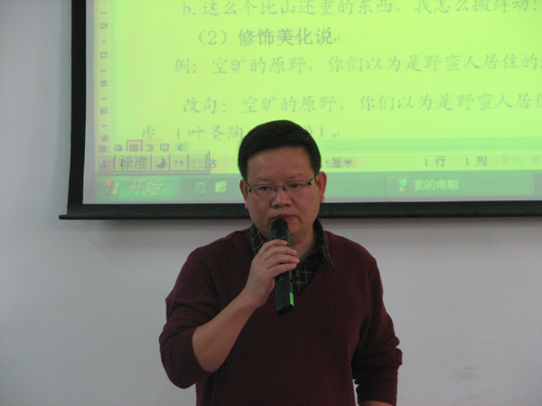 2010年12月13日下午,暨南大学华太阳成城集团tyc234cc副院长、博士生导师曾毅平教授应中文系系邀请,作了题为“修辞的多重属性及其研究形态”的讲座。中文系研究生和部分老师聆听了此次讲座。曾教授的讲座分四个部分:修辞观的发展,修辞的属性,修辞学研究的主要形态,修辞学研究的新形态——社会真实事件的修辞学研究。曾教授深入浅出的讲解、丰富多彩的例证、独特新颖的见解与听众精彩的互动,为本次讲座营造了活跃的学术氛围。讲座带来了学科前沿信息,使师生受益匪浅。整场讲座掌声不断,深受欢迎。