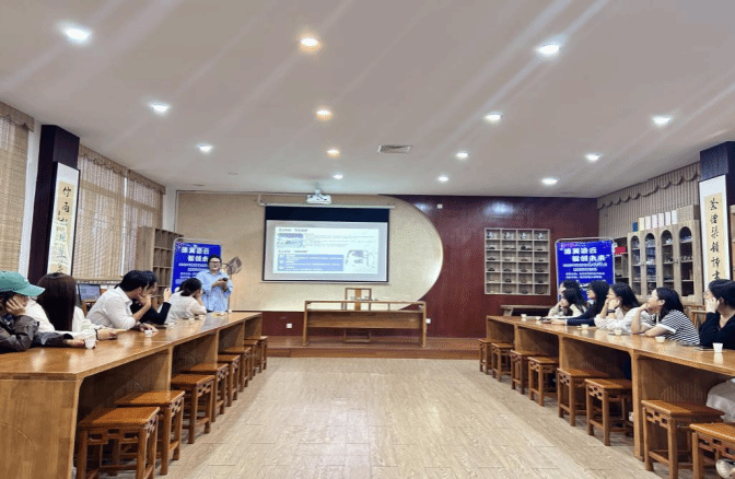 活动中讲解员卢妍宇向参加交流座谈的青年学子展示了闽南的非遗,她介绍了漳州木版年画、布袋木偶戏、漳绣、八宝印泥等,她表示在新时代,非遗需要在传承中不断创新,通过与现代科技、时尚元素的结合,让非遗焕发出新的活力。