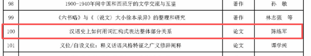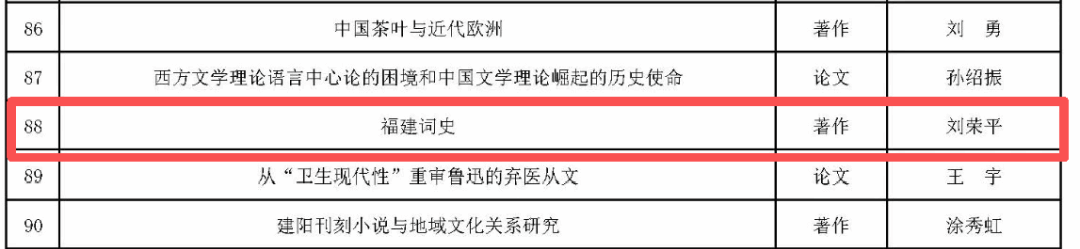 日前,福建省社会科学优秀成果评奖办公室对福建省第十六届社会科学优秀成果评奖结果进行了公示,我院2项成果荣获三等奖,分别是刘荣平教授的著作《福建词史》和陈练军教授的论文《汉语史上如何用词汇构式表达整体部分关系》。