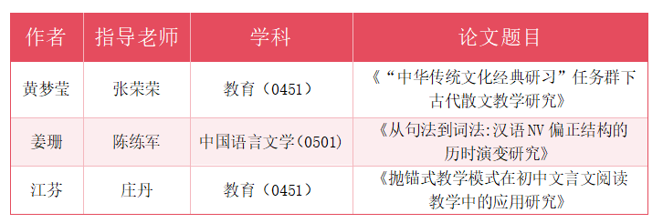 近日,福建省学位委员会办公室正式公布2024年优秀硕士学位论文评选结果。在此次评选中,我院斩获佳绩,共有3篇硕士学位论文成功入选。这份殊荣,既是对我院研究生学术素养与科研能力的充分肯定,也见证了学院深耕学术、潜心育人的扎实成果。现将本次荣获省级优秀硕士学位论文的名单公布如下: