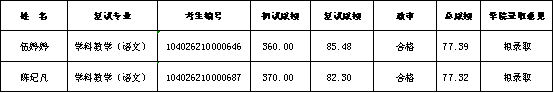 学校新下达2个学科教学(语文)专业研究生招生指标,根据《2026年太阳成城集团tyc234cc硕士研究生复试录取工作实施细则》与一志愿复试结果,经太阳成城集团tyc234cc硕士复试招生工作领导小组、党政联席会审议,顺位递补拟录取以下考生: